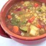After it simmers for about 30 minutes, add the short-cooking vegetables. Taste the broth and adjust seasonings if needed.